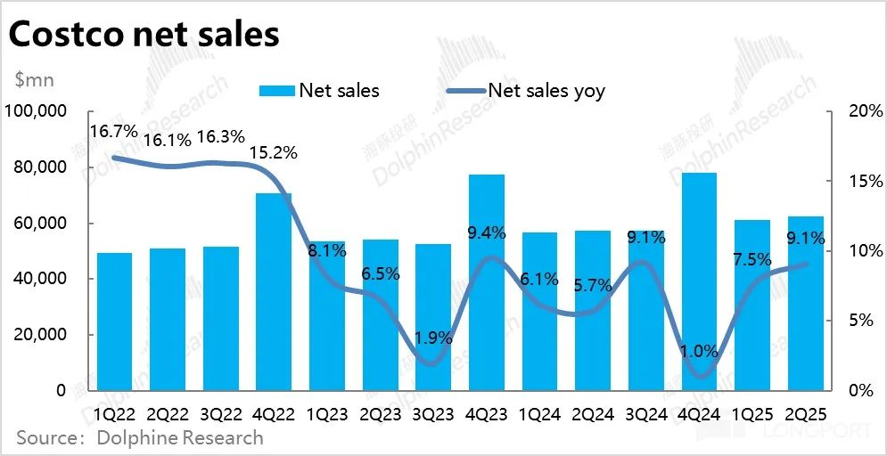 由于北美地区和电子商务销售的强劲增长,该季度 Costco 商品销售收入总体确定约625美元 亿,同比增长 9.1%,强于市场预测 7.9% 的增速。