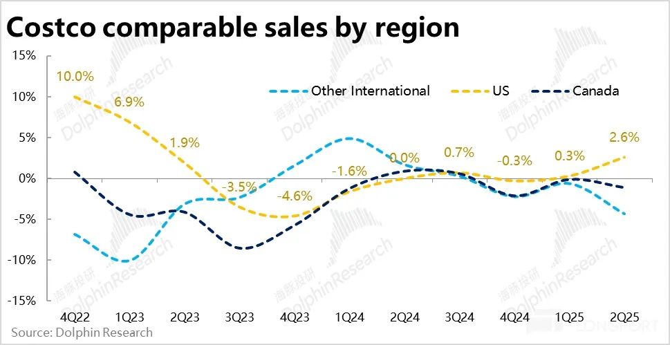 而且加拿大和其他国际同店的增长都在逐月放缓,但主要是汇率因素的影响。除去汇兑和油气价格的影响后,加拿大和国际地区的同店增长也存在增长。 10%。