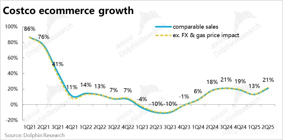 随着后疫情时代增长的新动力,Costco 本季度电商销售额同比增长高达 与上赛季相比,21%大幅提升,明显高于预期。 15%。据披露,Costco网上网站流量同比增长 13%,客户数量同比增长 10%。也表现出明显的价格上涨趋势,但应该不仅仅是通货膨胀因素,更应该为黄金和珠宝在品类上表现最强的比例上升做出贡献。