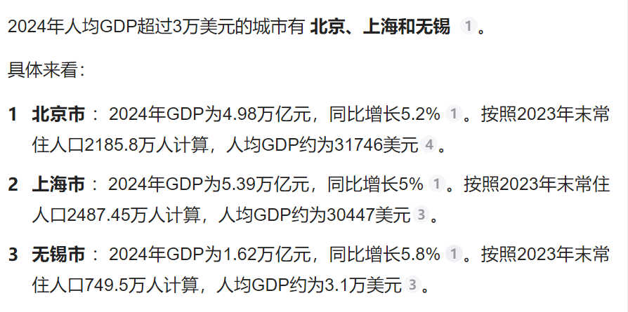 与北京、上海相比,无锡人均GDP