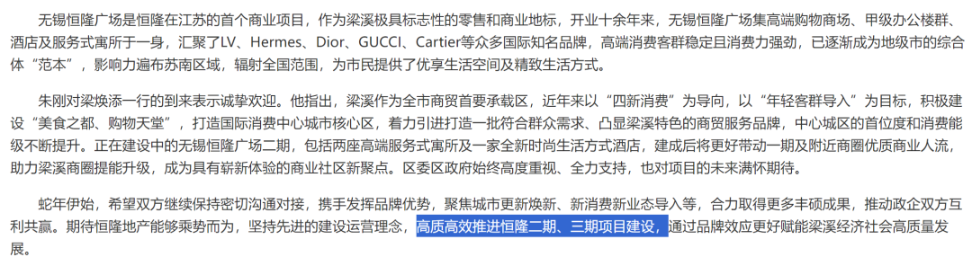 对商场规模不够大的硬伤,无锡恒隆广场二期项目已经新建,三期也在推进。