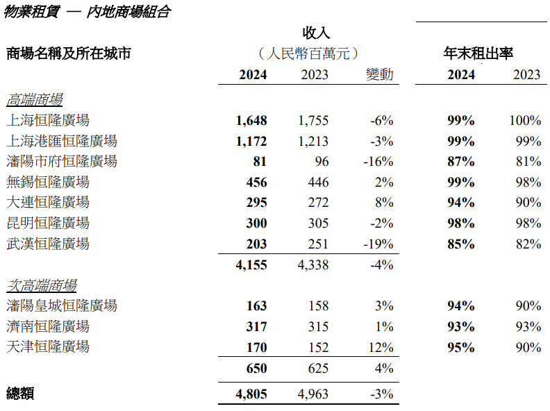 与2023年相比,租金收入为4.56亿元,2024年年底租金率也达到99%。