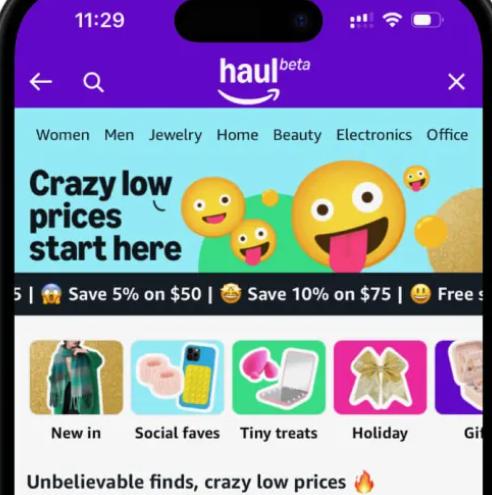 的确, Haul于2024年11月在美国上线,显露出与Temu相同的激进面貌。网页上涌现了大量不到20美元的商品,全减、折扣、免运费等优惠活动铺天盖地,有些产品在打折之后,甚至比Temu还低。。