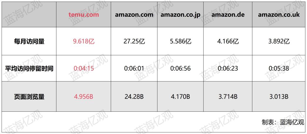 图/Temu(主站)和亚马逊部分主要网站的流量估计