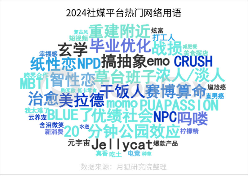 2024年“迷因文化”在多圈层中盛行:MOMO、20分钟公园效应、NPC、吗喽、草台班子、消费降级、女性赋权等网络用语成为用户跨圈层社交、表达焦虑、抵抗社会压力的通用表达。