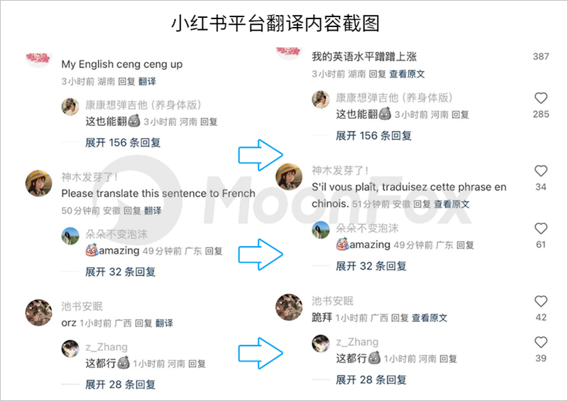 2025年初,大量“TikTok难民”注册小红书,平台紧急上线翻译功能,从中文拼音简写、英文网络缩略语、互联网梗到各国外语,甚至摩斯电吗、Unicode编码均能翻译。