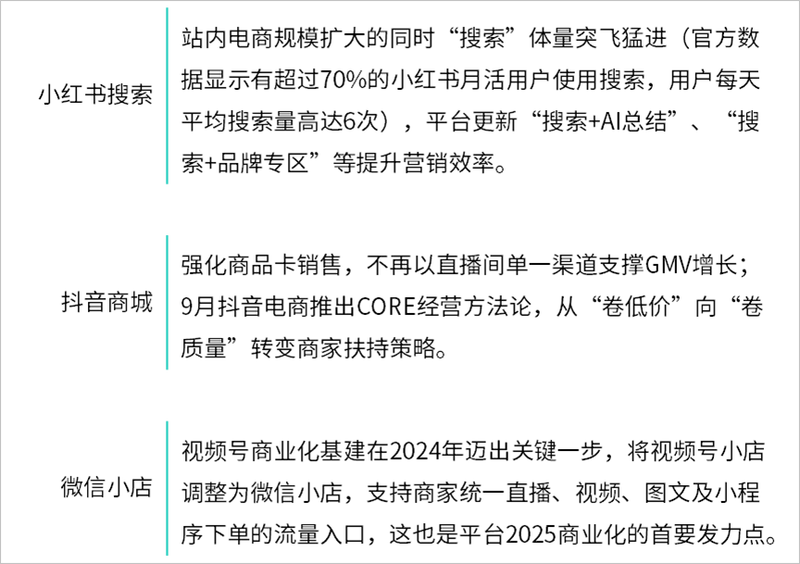 过去一年新兴电商平台仍在加码基建,衍生新的营销场景有望在2025进一步释放商业价值: