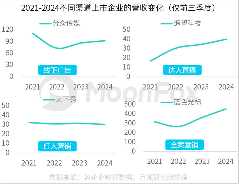 社媒渠道投放形成多种方法论、策略趋同,互联网广告增长放缓;2024年线下渠道(户外大屏、电梯广告等)的广告投放回温的现象值得关注。