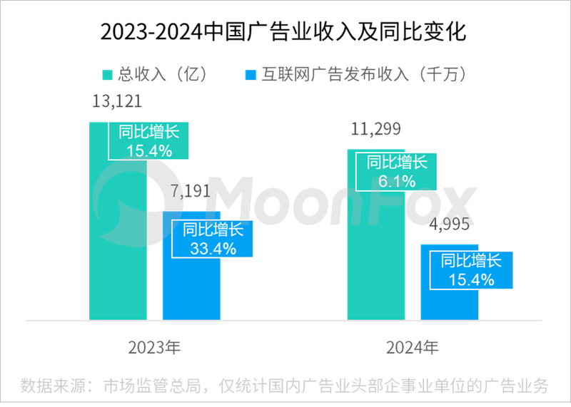 宏观来看,国内广告大盘收入保持增长,以互联网广告发布收入为主,且传统媒体向新媒体转型仍在加速,但行业增速明显放缓,与上一年增速数据相去甚远。