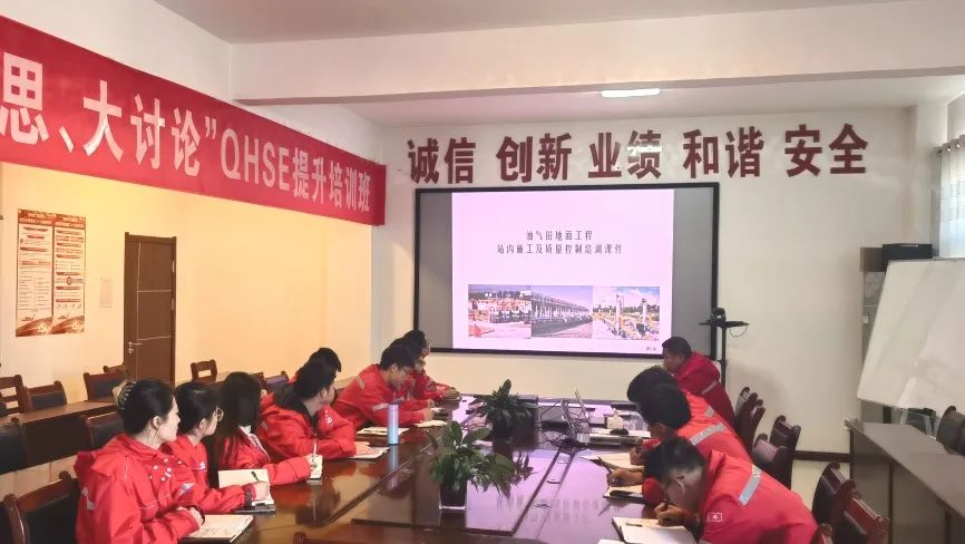 大港石油建设公司定吴项目部紧密结合施工生产实际,组织全体员工进行技术、质量等专业知识培训。在培训现场,员工讨论施工中的困难,共同探索解决方案。
