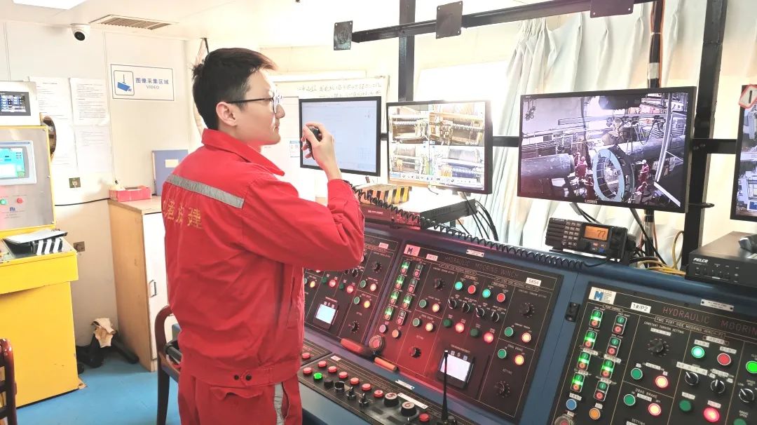 作为船机部的新手,大港石油建设公司权辉在老员工的带领下,逐渐了解和掌握了锚的基本操作方法,并在努力提高英语水平,从而更好地与同事沟通合作。