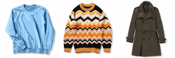 中间层为保温隔热层,主要作用是提供保温性能,锁定体内热量,避免体温过低,如毛衣、毛衣等服装。