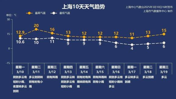 今天,当地气温迅速升高,但从周三开始,气温再次下降。由于冷空气相对较弱,温度和湿度都比较活跃,所以“全减”的套路不同,不会上演“大跳水”。周三最高气温降至16℃后,周末气温保持在6~13℃之间。