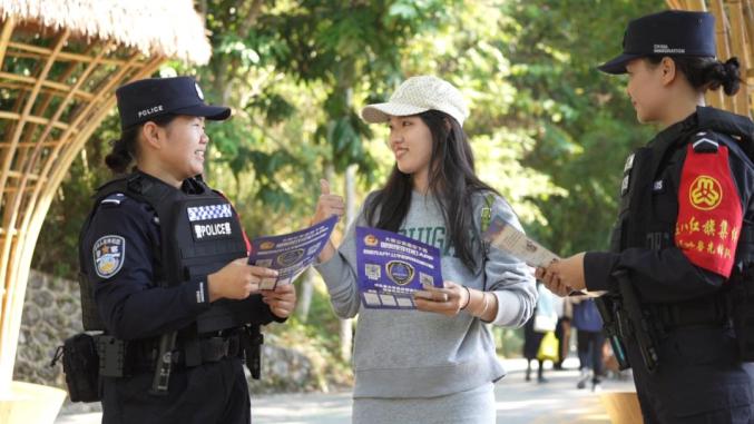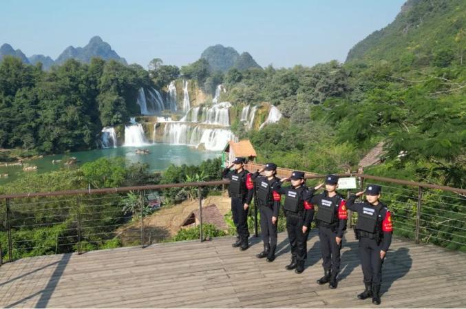 在德天跨国瀑布景区,经常会出现这样温暖的“警察”现象。在工作中,德天女警先锋队真诚地为群众服务,深入群众,贴近游客,将被动管理转化为主动服务,为中越德天(板约)瀑布跨境旅游合作区的稳定有序运营保驾护航。