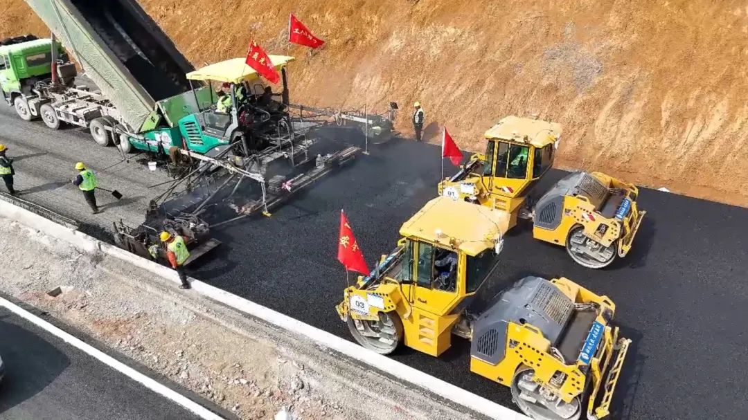 下层是道路承载能力和使用寿命的重要保证,在保证整个工程质量方面发挥着重要作用。自2024年11月试验段成功铺设以来,下层铺设已完成14公里,工程量约占总数的15%,中层铺设9公里,工程量约占9%。