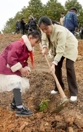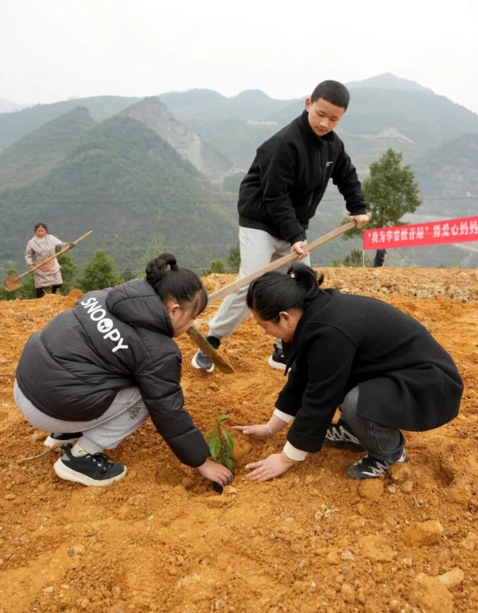 “爱心妈妈”放大招,有义务植树。 关爱行动,留守儿童安心成长。