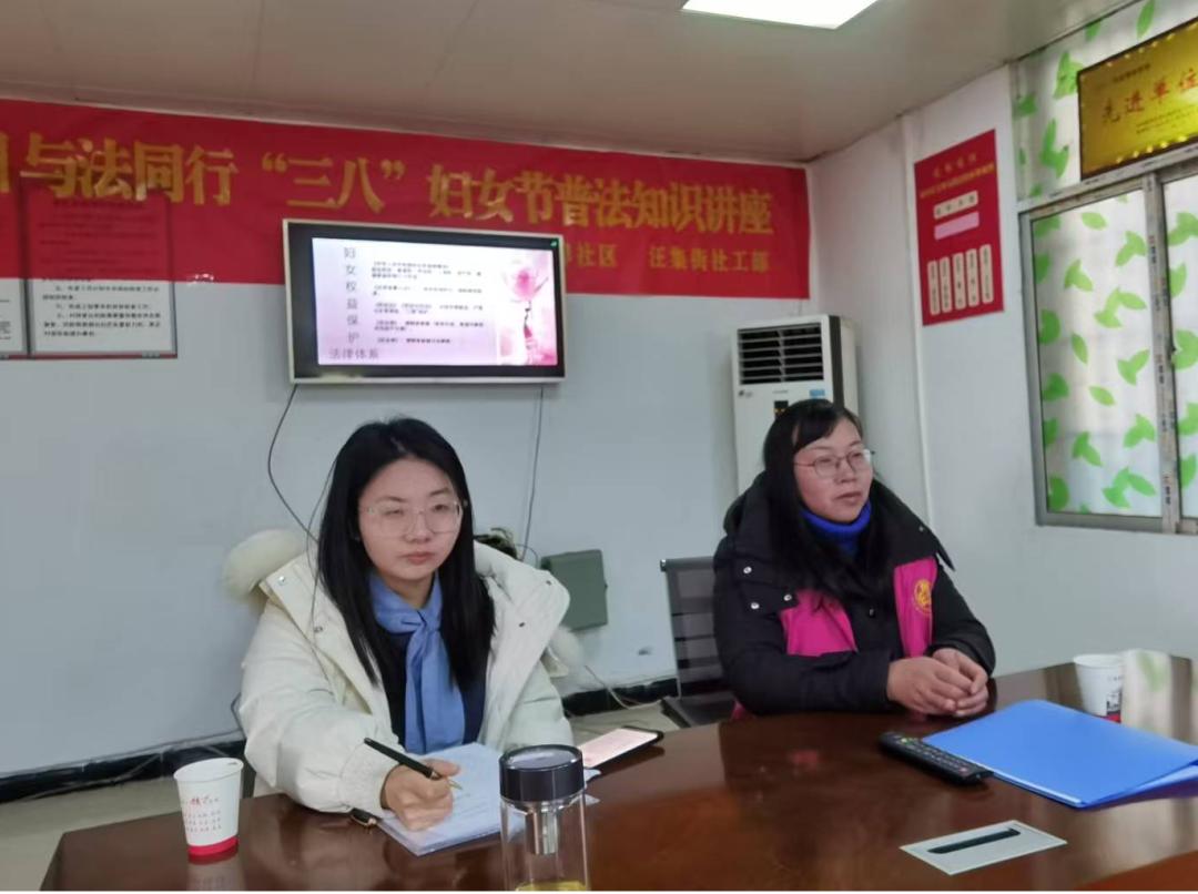 三店街、双柳街、问津社区、龙城社区、向阳社区、汪集街孔埠社区、李集街潮泥村等妇联邀请驻地律师围绕《妇女权益保护法》、《反家庭暴力法》等法律法规,围绕《妇女权益保护法》、《反家庭暴力法》等法律法规进行专题讲座,重点讲解婚姻家庭、财产继承等热点问题。进一步提高了妇女群众依法办事、遇事找法、解决问题用法、解决矛盾依法的意识和能力。