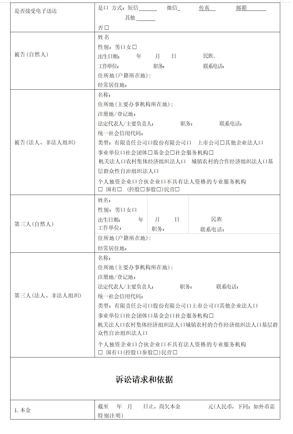 要素式起诉状和答辩状采用表格化、可检查的方式,提取特定类型的纠纷要素,由各方填写,完成更清晰、更清晰的引导,更有利于当事人准确表达诉求。