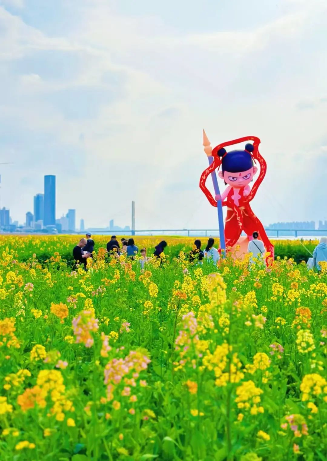 看到千亩油菜花竞相绽放。