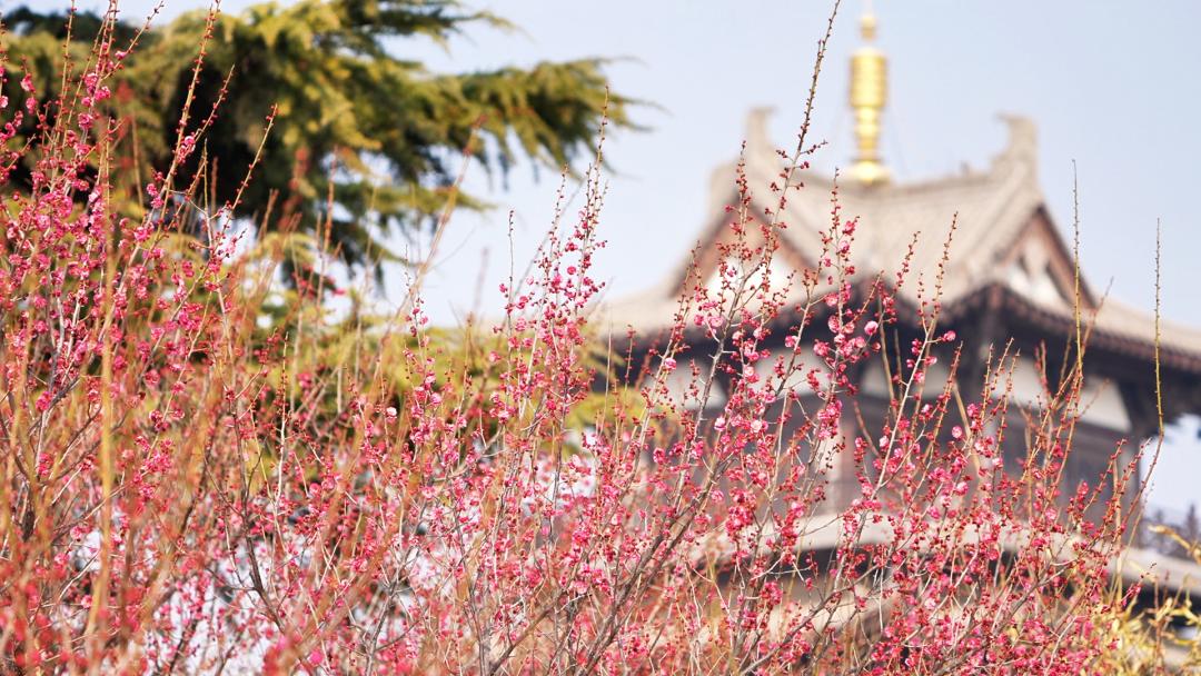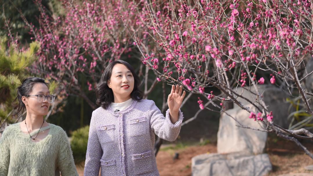 ▲梅花在磁州水墨园绽放,向大众传递着浓浓的春天气息。