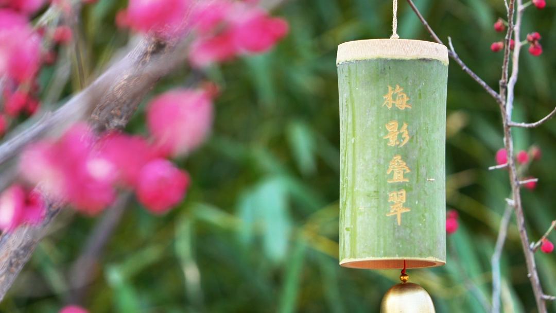 一进梅园,就能感觉到暗香飘荡,沁人心脾。在温暖的阳光下,在微风中,满枝的枝条尽情地伸展开来,朱砂梅、素心梅、腊梅、美人梅...一簇簇梅花,重叠着枝头,或含苞待放,或静静绽放。白、嫩黄、粉红的花瓣在枝头轻轻摇曳,与远处的白墙灰瓦遥相呼应,别有一番宁静之美。还有大片盛开的迎春花,像洒金一样温暖而明亮的色彩,相互交织成一幅醉人的春景。亭台楼阁,游廊小路,涓涓细流,移步异景,既有湖光山色,烟波浩淼的气魄,又有江南水乡小桥流水的诗韵。此时此刻,徜徉在花丛中,轻风吹过梅林,仿佛沉浸在香海中。