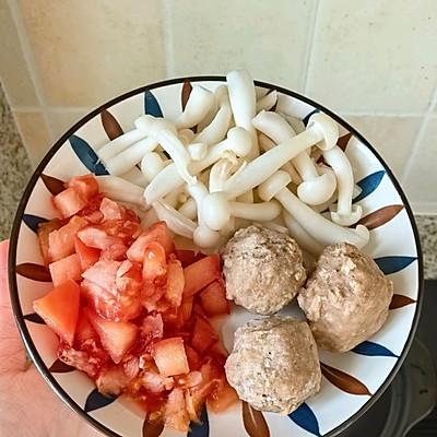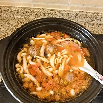 1、配料:白玉菇,西红柿,牛丸,或者加点冬瓜或白萝卜片,味道应该也不错。
