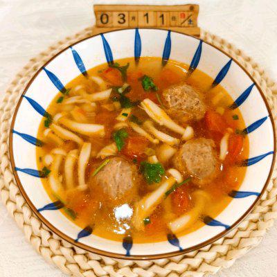 6、这种汤结合了白玉菇的美味,肉丸的嫩滑,再加上弹性的细粉丝,每一口都有不同的体验。