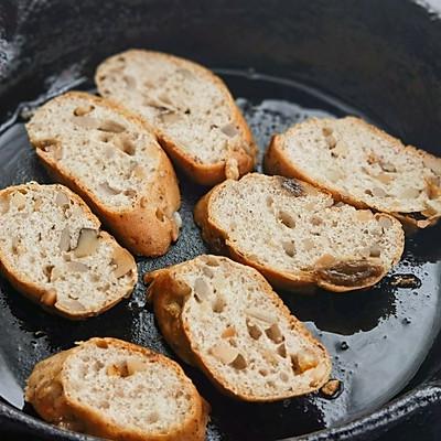 3、煎欧包,鸡蛋也煎熟,没有拍照。