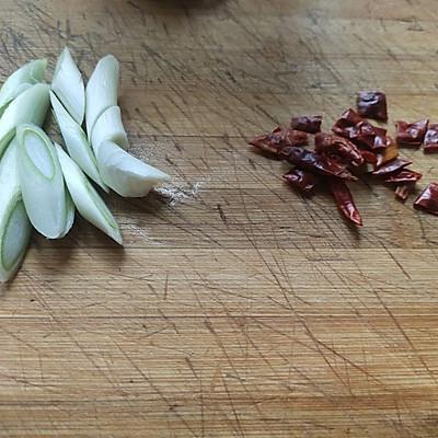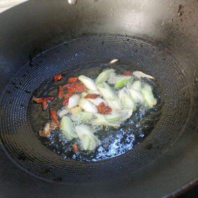 7、加油后加入葱花和干辣椒。不爱吃辣的可以不放辣椒。