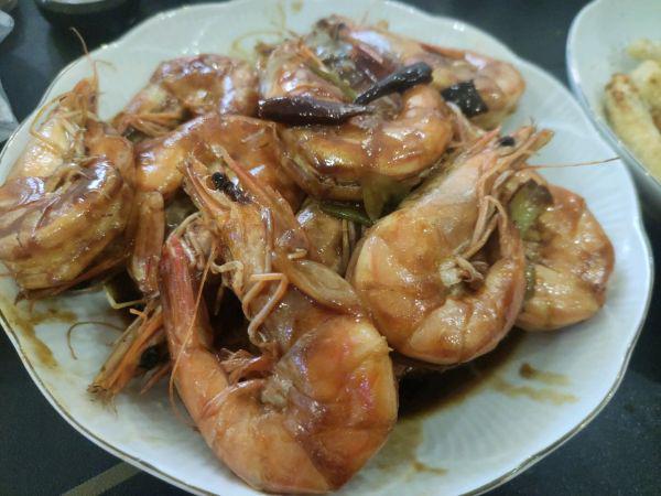 以前特别喜欢在餐馆里开背虾,然后我丈夫自己也学会了。