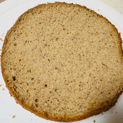 1、1. 无油无水空碗,倒入牛奶 40 mL,倒进油 35 mL,慢慢地向一个方向搅拌,直到乳化;加入 40 加入克低筋粉 10 加入三个鸡蛋,一滴白醋,克玉米粉,Z 将字形搅拌至颜色一致备用(蛋清放入冰箱冷藏,防止冷却)提前预热烤箱 2. 蛋清加 20 将克糖消磨至弯钩状态,分三次加入前一步,搅拌均匀(一定不能乱搅拌),倒入六寸模具,冲出气泡,放入烤箱,150。 度 60 分钟 3. 到时候看清模震出热流,倒扣在架子上放凉取出,分三分。