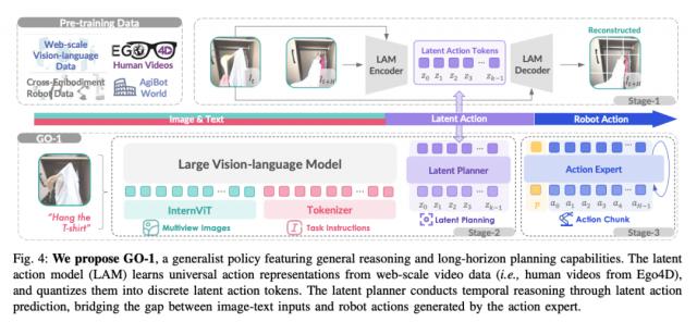 换言之,基于 GO-1 理论上,大型机器人只要 "看过" 录像,可以学习相应的动作。