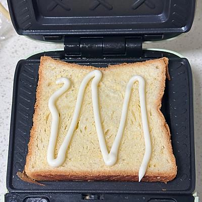 3、在吐司上涂一点色拉酱,增加味道。