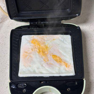 1、用三明治机做三明治,超级方便,超级简单。鸡蛋散开,铺满格子。