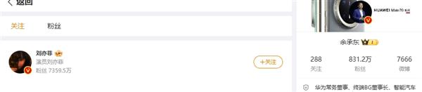 更有意思的是,刘亦菲和余承东也关注了个人微博,但既然是华为折叠屏手机的忠实用户,仙女姐姐代言智慧应该不会出乎意料。