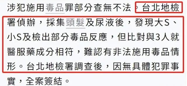 由于异议声音较大,当地有关部门收集了大量的异议。 S 和小 S 头发和尿液,虽然检测到了药物成分,但是与它们提供的药物成分一致,无法确定吸毒。