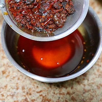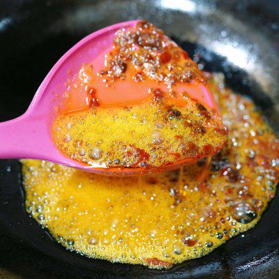 3、油 4 层热(半红油,半食用油),放姜片炒香,放辣椒。