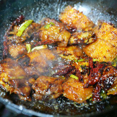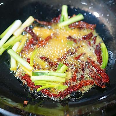 带鱼早炒(我这次买的炸好省略了这一步,能翻看前面关于带鱼的食谱) 干辣椒我用的皱皮干辣椒,小孩子也可以吃,香而不辣。喜欢辣的可以选择二荆条这种。
