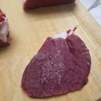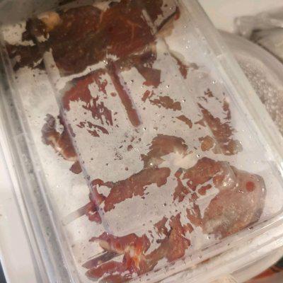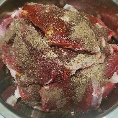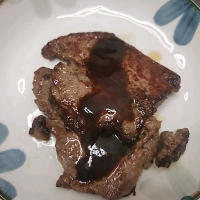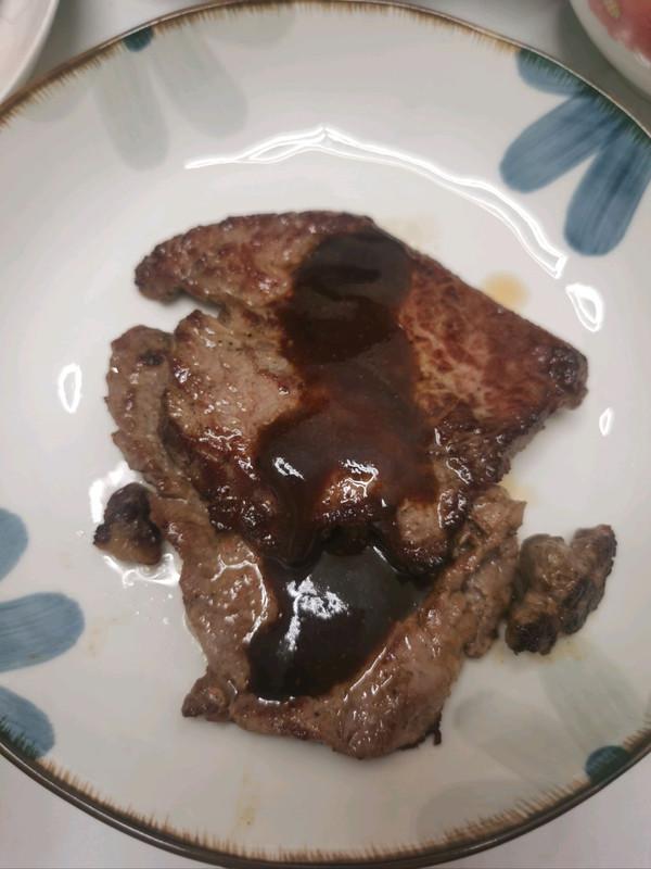 5、平底不粘锅,直接加两片油炸,挤上黑胡椒汁即可食用。