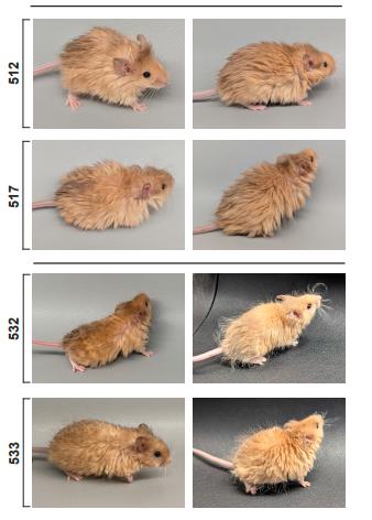 最大的问题来自本轮媒体报道中使用的主要宣传图。对比公司发布的预印论文,你会发现这两只长毛老鼠最有可能是论文中的编号。 512 和 517 这两只。可以理解,毕竟其它老鼠也没有这两只漂亮。