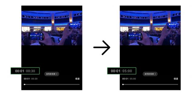 “微信朋友圈,可以发 5 视频分钟了!30s → 300s,这次真的长了。您喜欢吗?"