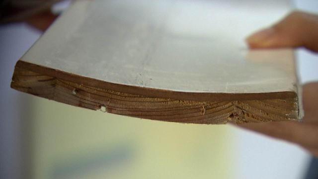 就这样,连续两天,装修公司反复抽烟接近。 15 桶水开始大规模撬地板。工人们拿起一块地板,对我们说:“你看,这块木头已经变形了,两头翘起来,中间低,可以看到。”从餐厅到客厅,工人师傅说,这 30 多平方米的实木地板已全部浸泡。