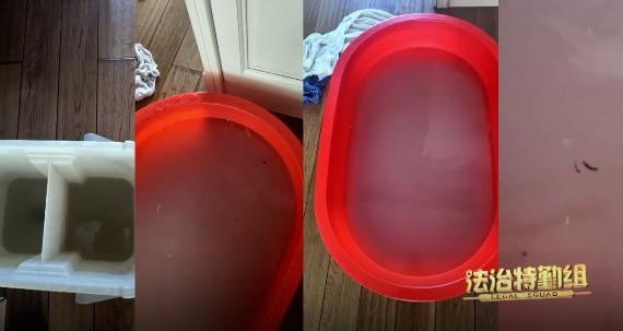 四位老人用水槽和水桶一遍又一遍地续水,从晚上8点到晚上12点。第二天早上,当老人再次回家时,虽然他的水阀已经关闭,但空调仍在渗水,地上的五个塑料水槽已经被水覆盖。这些水看起来不清澈。仔细一看,上面还飘着菜叶。
