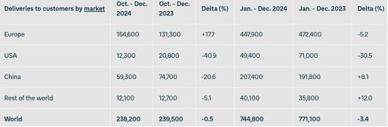 2024 2008年,大众汽车纯电车全年销售 74.48 万台,同比下滑 3.4%。
