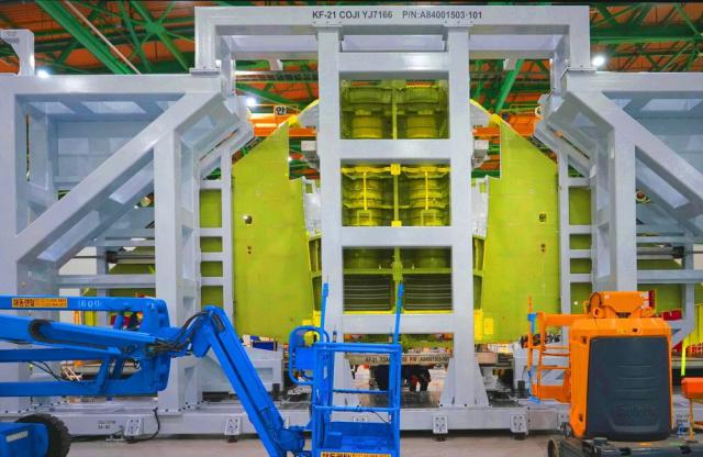 第一架韩国KF-21量产机完成机身对接,明年交付。