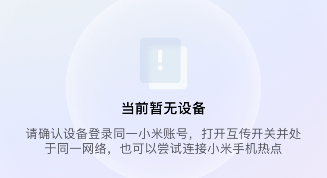 而且,小米互传文件时得先在 APP 里登录小米账号,两台设备还得在同一局域网,或者手动让苹果设备连上小米手机热点,要不然你在 APP 里检测不到安卓手机。