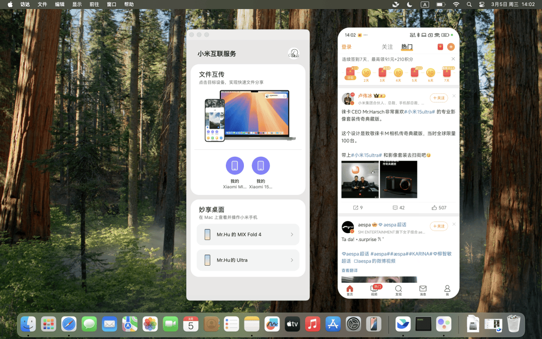 如果说 OPPO 的思路是让手机来控制 Mac,那小米的思路则刚好反过来,它支持把小米手机镜像投屏到 Mac,然后用电脑来控制手机,从而在 Mac 端也能够用上安卓 APP。