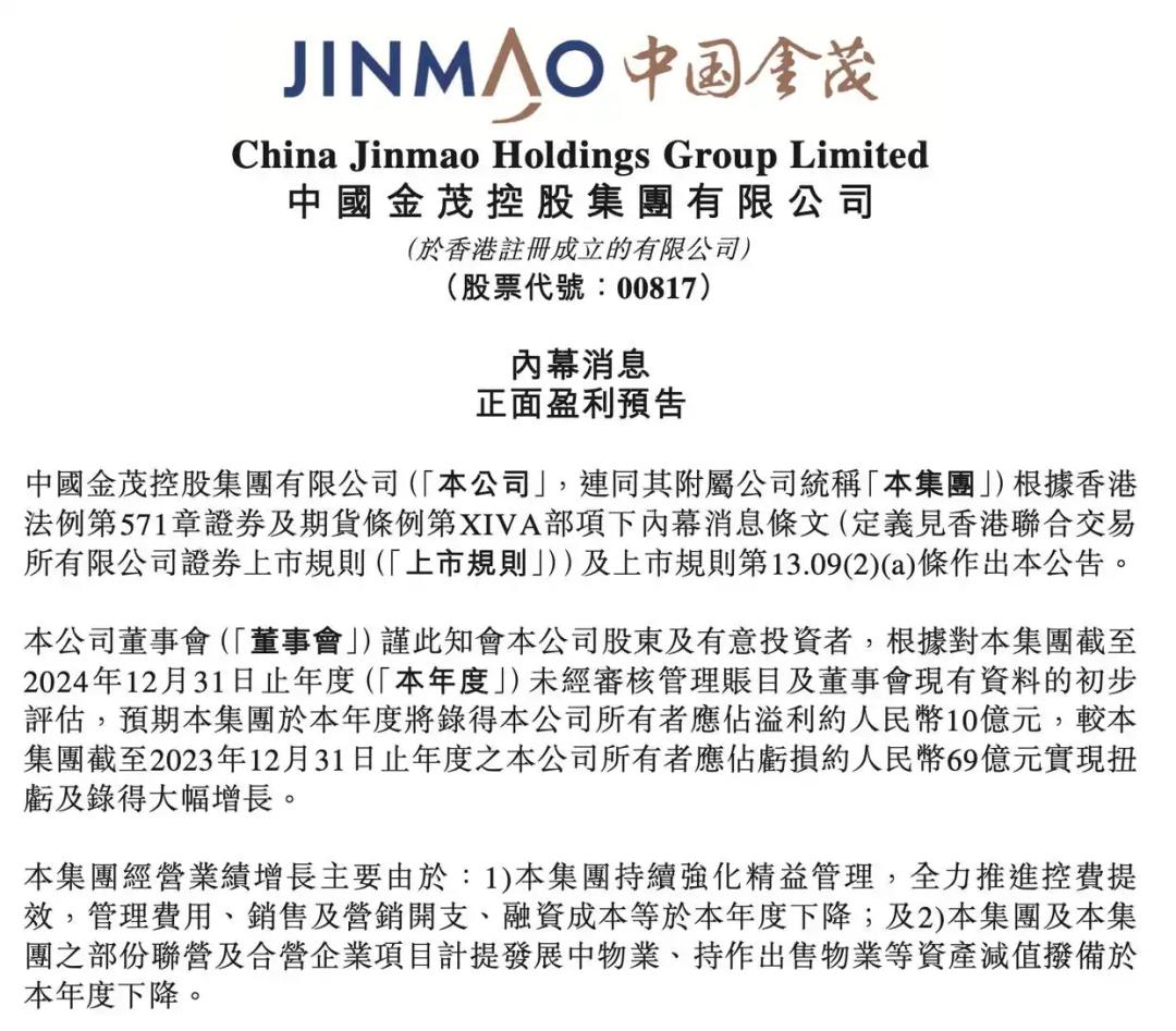 3月11日,金茂发布正面利润预测,股东应占溢价约10亿元。对于业绩的提升,金茂给出的解释是管理成本、营销成本、资金成本都在下降,记提较少。