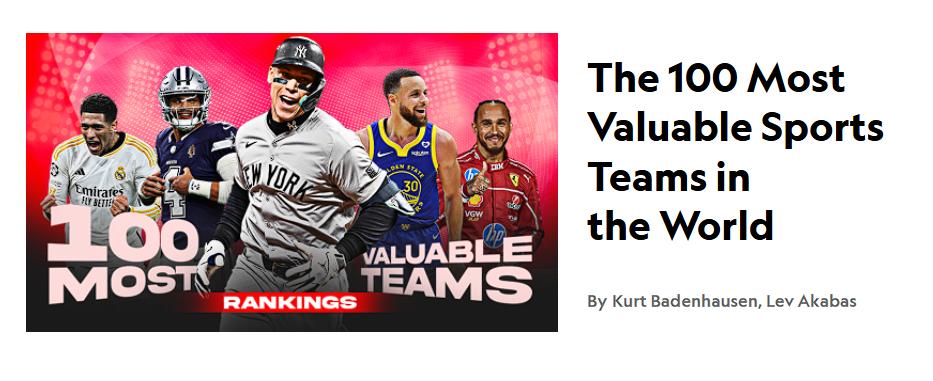 以本文发稿日为依据,将精力向前推进一年,《Sportico》发布了18个大型名单,包括各大联赛的球队估值、世界上最赚钱的球员、明星收入拆解等。它们是体育商业世界的重要信息来源。