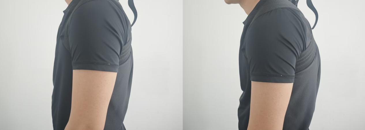 更具体地说,它的张力并没有我们想象的那么大。当我们第一次佩戴它时,我们的身体会站起来。但是,一旦我们进入伏案工作,看手机或者其他需要把手臂放在身体外侧的状态,这种拉力是不够的。如果我们不注意,我们就会回到原来的状态,我们根本无法打开胸椎。
